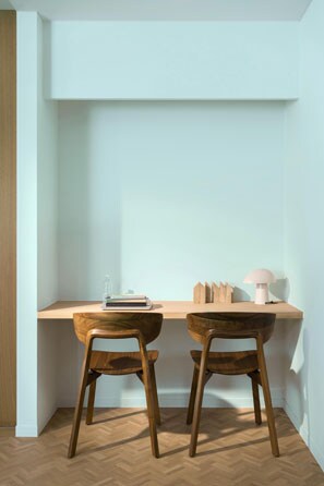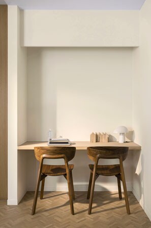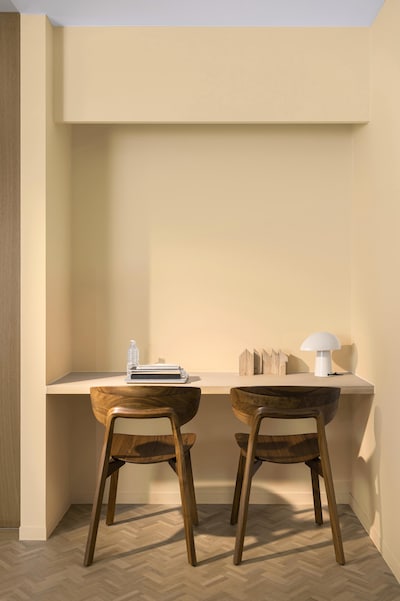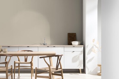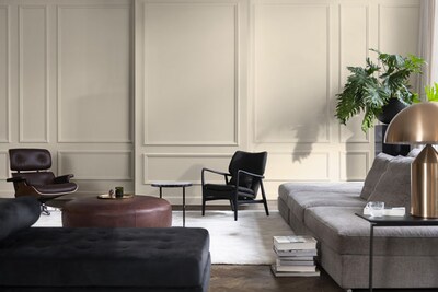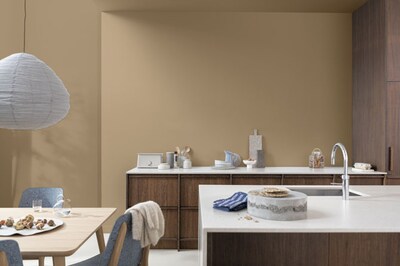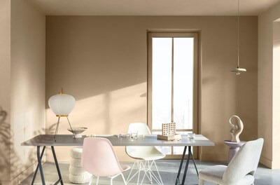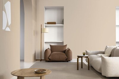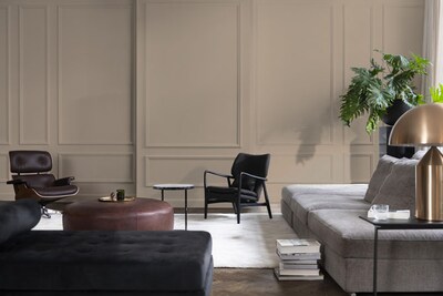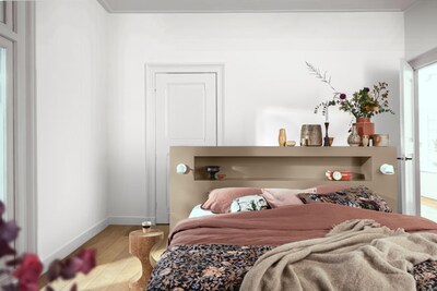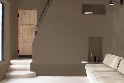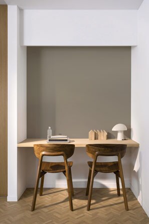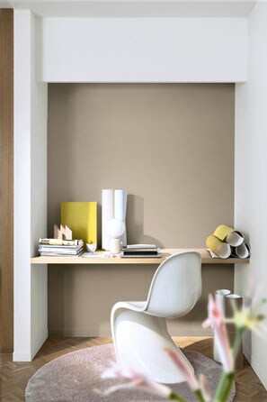 Cette palette sophistiquée autour de neutres chauds est idéale pour créer des espaces conviviaux, confortables et équilibrés.