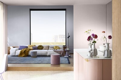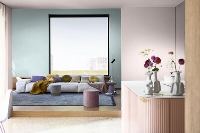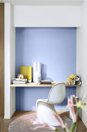 30 couleurs apaisantes et rafraichissantes alliant gris froids, bleus aériens, Lilas légers à des nuances d’accentuation plus profondes.